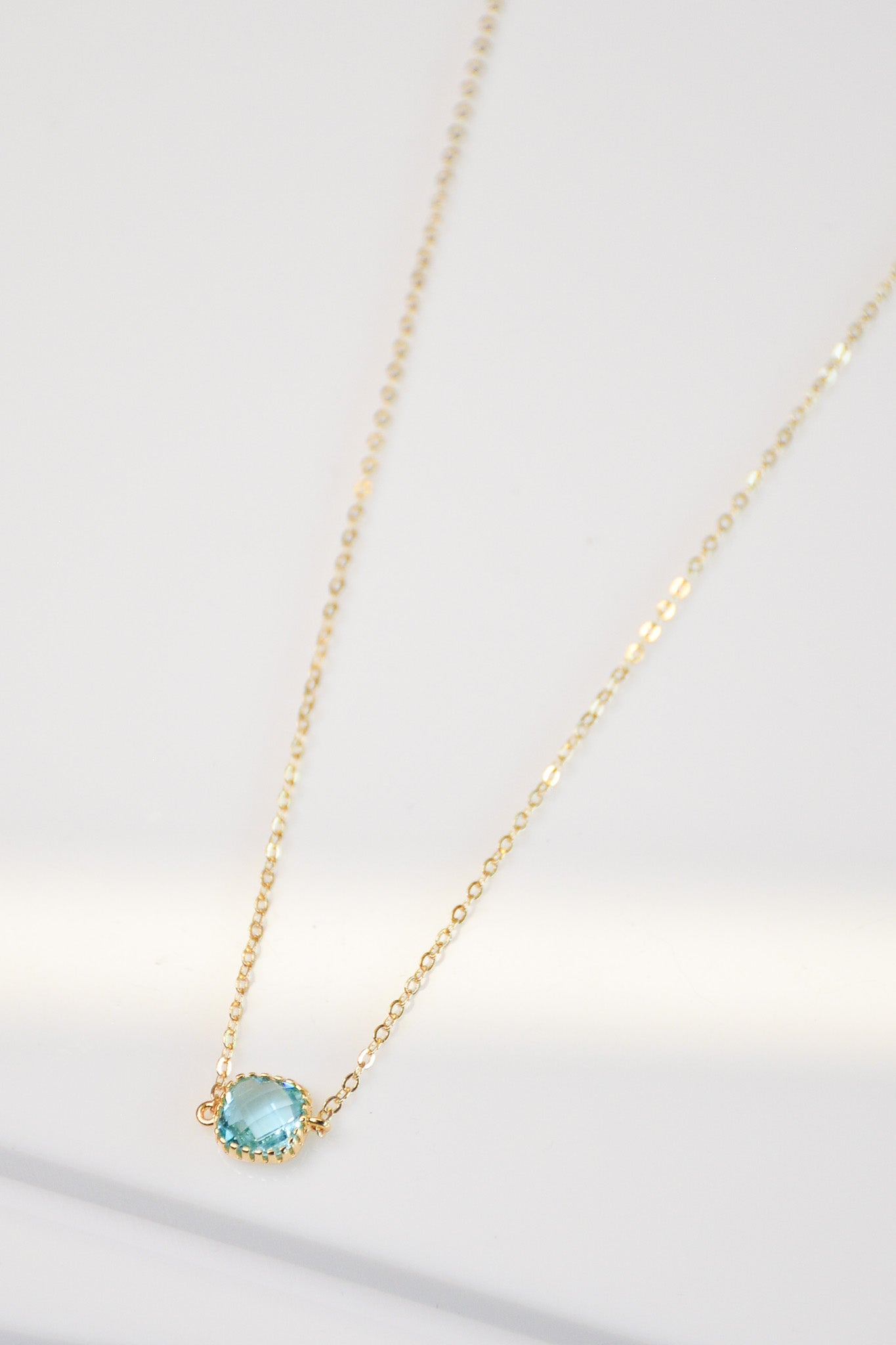 Perfect for dressing up an outfit or for gifting, these elegant and dainty necklaces are a must have! Set on a 14k gold filled chain, these square gems measure at 9mm and 3mm in thickness.