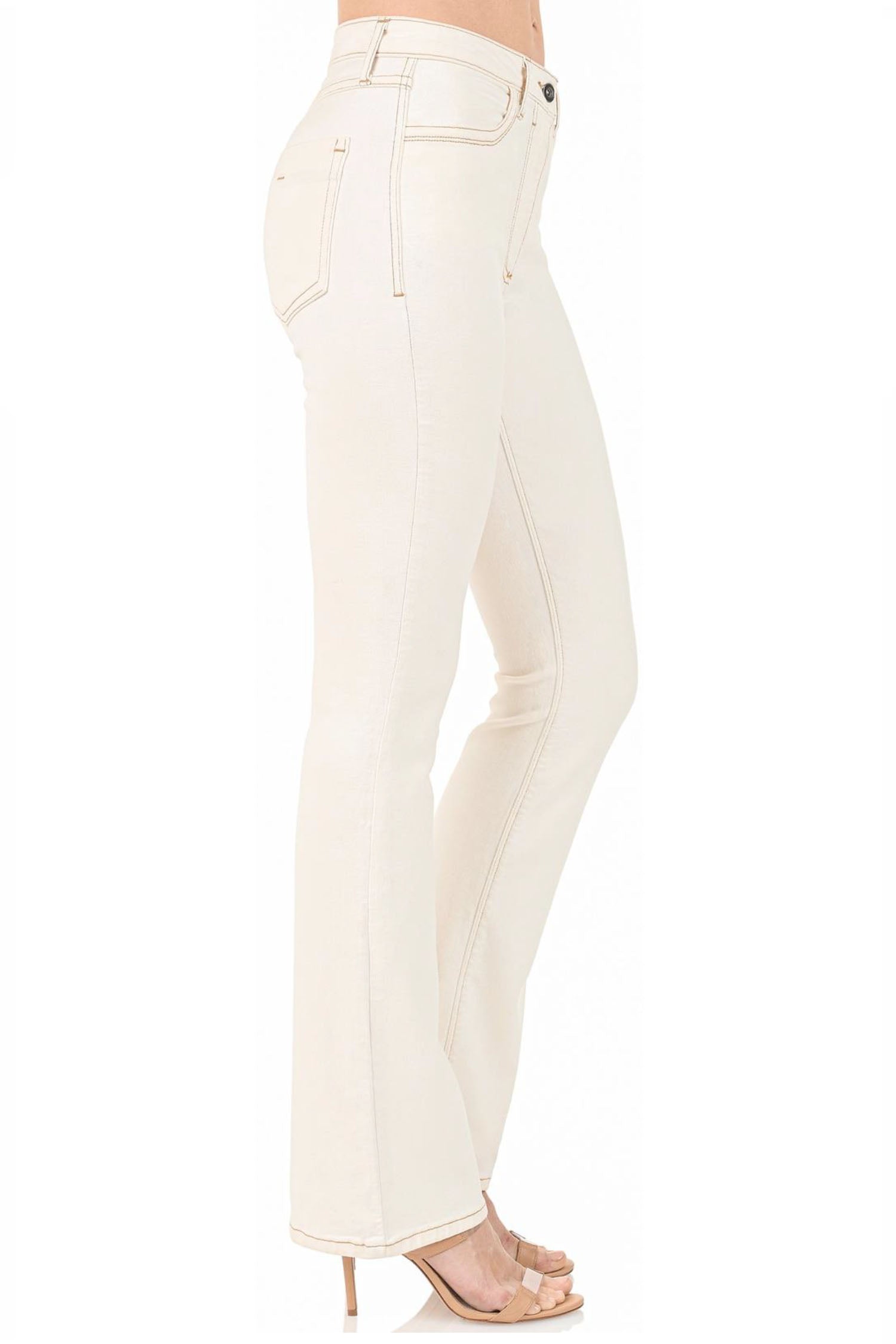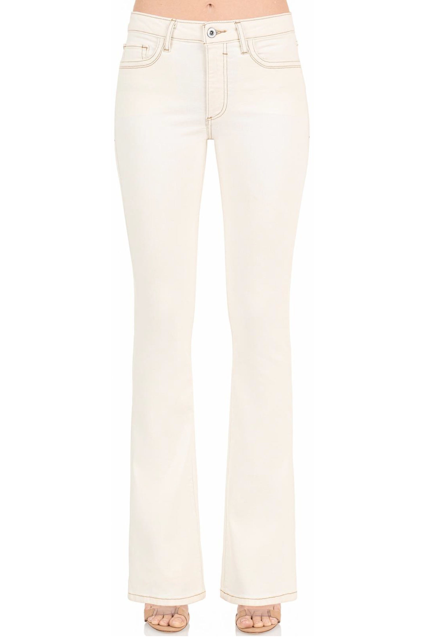 Feel like a star with these 70's chic boot-cut jeans that feature a mid-rise fit and dark contrast stitching. Throw these on with your favorite shirt or blouse and rock the day.