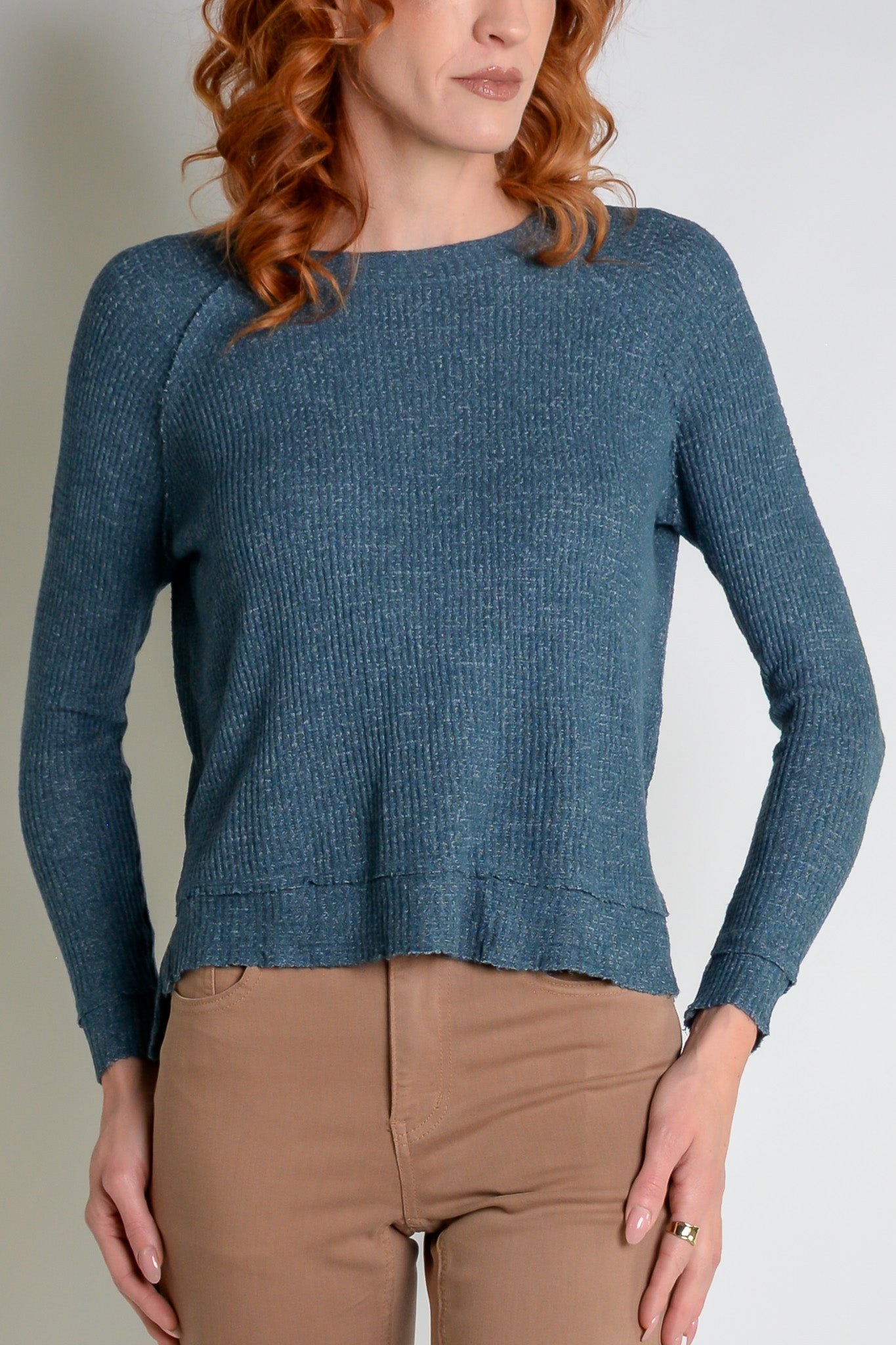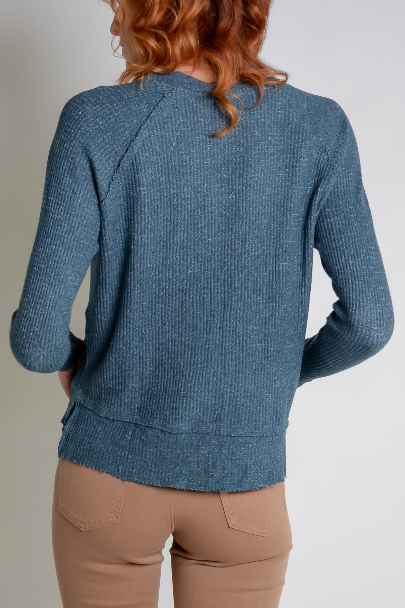 A wardrobe staple, this waffle knit top is super soft and features long sleeves, a crew neckline, and a high-low design. Super soft and cozy, this top is perfect for a casual day out and can be worn with your favorite skirt or pair of jeans!