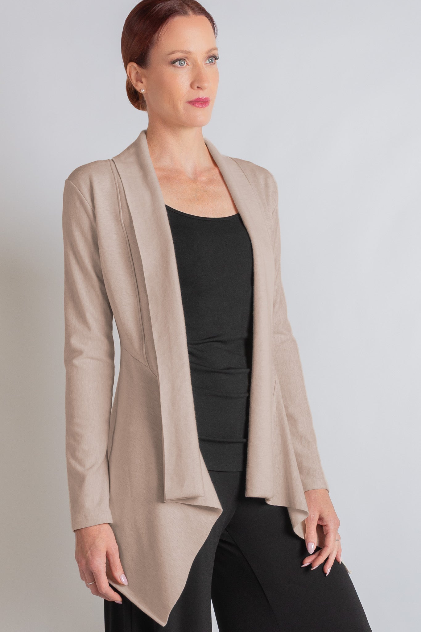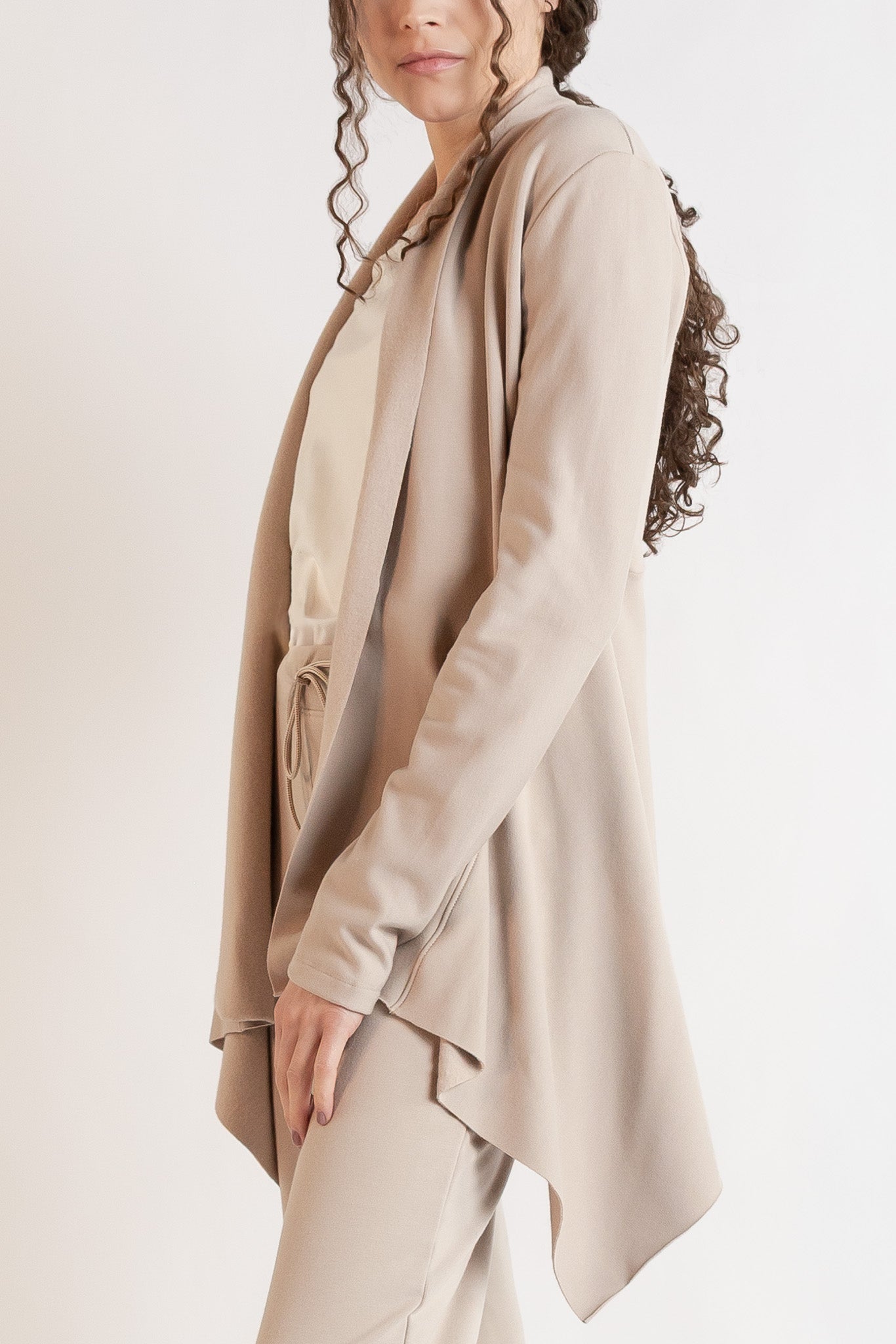 The Jute Jacket by Revir is a signature investment layer, designed for enduring style and elevated comfort. Crafted from responsibly sourced bamboo cotton fleece, it offers a lightweight yet cozy feel with exceptional softness and breathability. Thoughtful details like long sleeves, a clean front panel, and a fluid handkerchief hemline create a relaxed silhouette that moves effortlessly from everyday wear to dressed-up moments and travel. Timeless, versatile, and consciously made—this is an essential, perfected. Pair it with the Mina Leggings or lounge pant for a travel-ready, elevated layering look that moves seamlessly from home to life on the go.